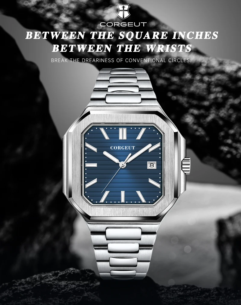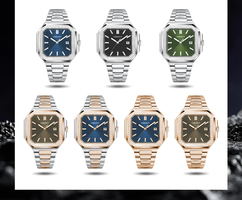 NH35 8215 Automatic Mechanical Watch for Man Blue Black Luminous Square New Men Watchs Stainless Steel Green Dial Custom